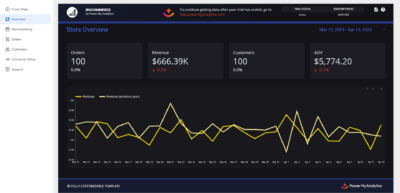 Power My Analytics integrates Data Studio (formerly Google Data Studio) with the BigCommerce metrics you need, enabling you to create completely custom dashboards for making data-driven decisions and enabling data storytelling. Automate and consolidate your marketing reports to save time and visualize BigCommerce data as well as other sources.