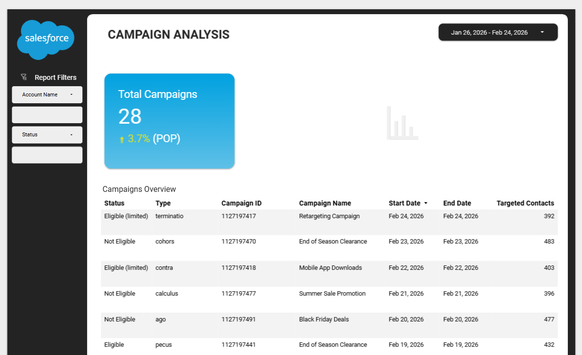 Connect your Salesforce account using a Power My Analytics marketing data hub, then transform your data into actionable insights. Combine your CRM data with data from other platforms to get a complete view of your marketing performance.